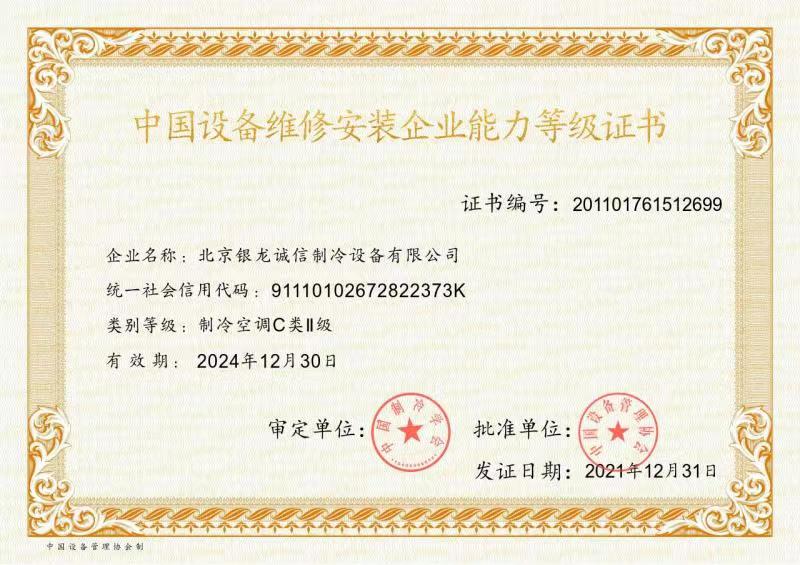 2007年:獲準(zhǔn)成為北京市制冷行業(yè)技術(shù)學(xué)會(huì)理事單位; 2009年:獲得北京市大興區(qū)百?gòu)?qiáng)企業(yè)認(rèn)證; 2009年:獲得國(guó)家高新技術(shù)企業(yè)認(rèn)證; 2011年:獲北京市安全生產(chǎn)先進(jìn)企業(yè)稱號(hào),節(jié)能環(huán)保先進(jìn)單位; 2012年:通過(guò)了國(guó)家高新技術(shù)企業(yè)復(fù)審; 2013年:公司董事長(zhǎng)獲"2013北京先進(jìn)企業(yè)家"榮譽(yù)稱號(hào); 2014年:獲2014年度中國(guó)冷庫(kù)工程安裝設(shè)計(jì)造價(jià)行業(yè)十大品牌;